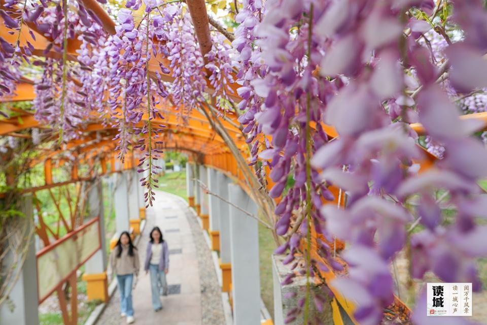 正在暖春的轻风取细雨浸湿下,福州各大公园的紫藤次序递次绽放,从老牌赏景地到新晋花廊,串串紫穗垂落廊间,层层花蔓绕架而生,为公园织就出一方浪漫的紫韵春景。